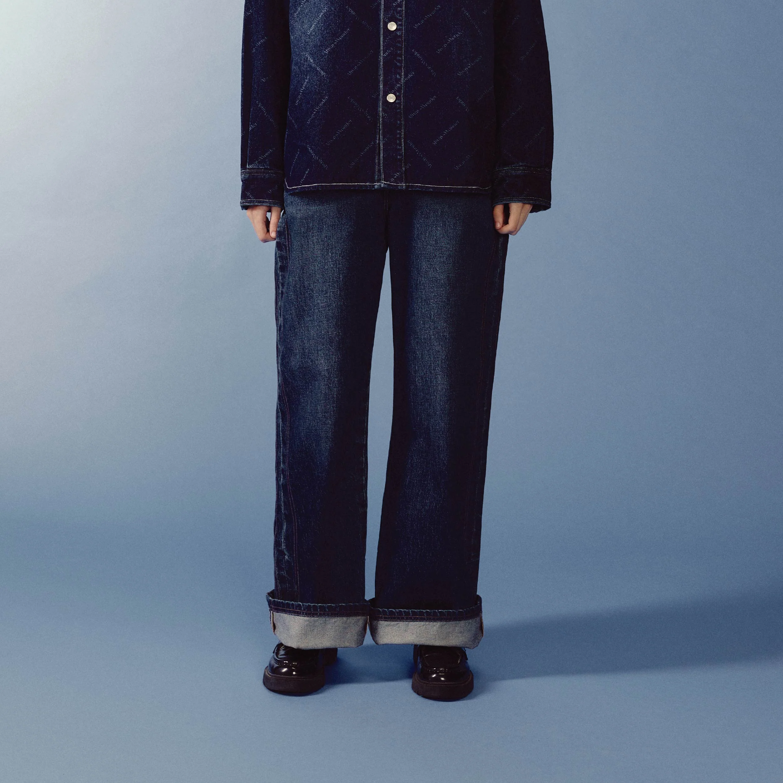 Tailored with a sculptural edge, these mid-rise denim pants reveal a logo-printed tape when the cuffs are turned up — a detail that echoes the craftsmanship and sophistication of modern sculpture. Available in two colorways — deep indigo and white with indigo stitching — for a bold yet minimalist impression.