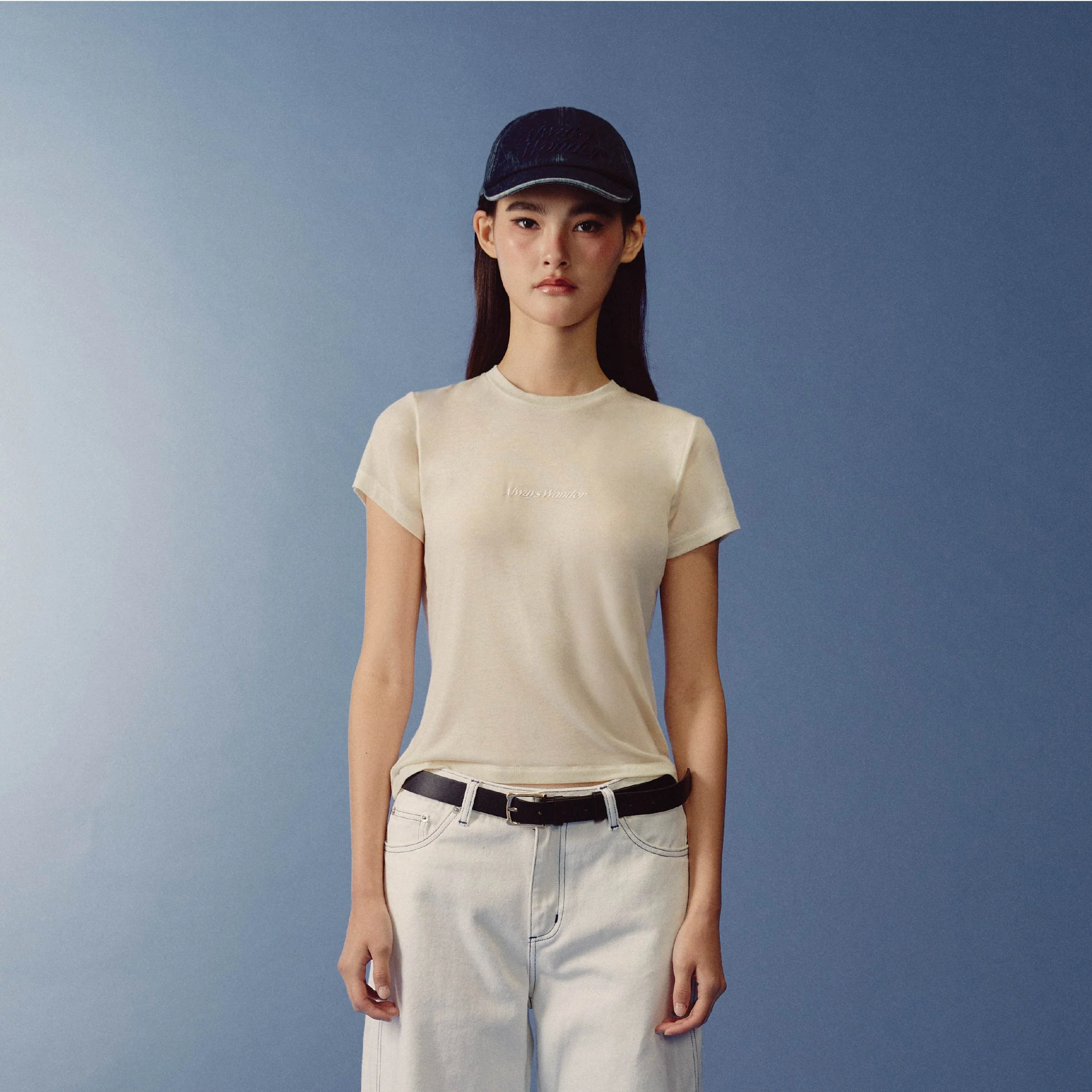 A fitted baby tee crafted from a soft-touch, spandex-blend fabric, featuring a minimal logo accent on the middle chest. It's slim fit naturally flatters the body, embodying understated confidence and modern femininity.