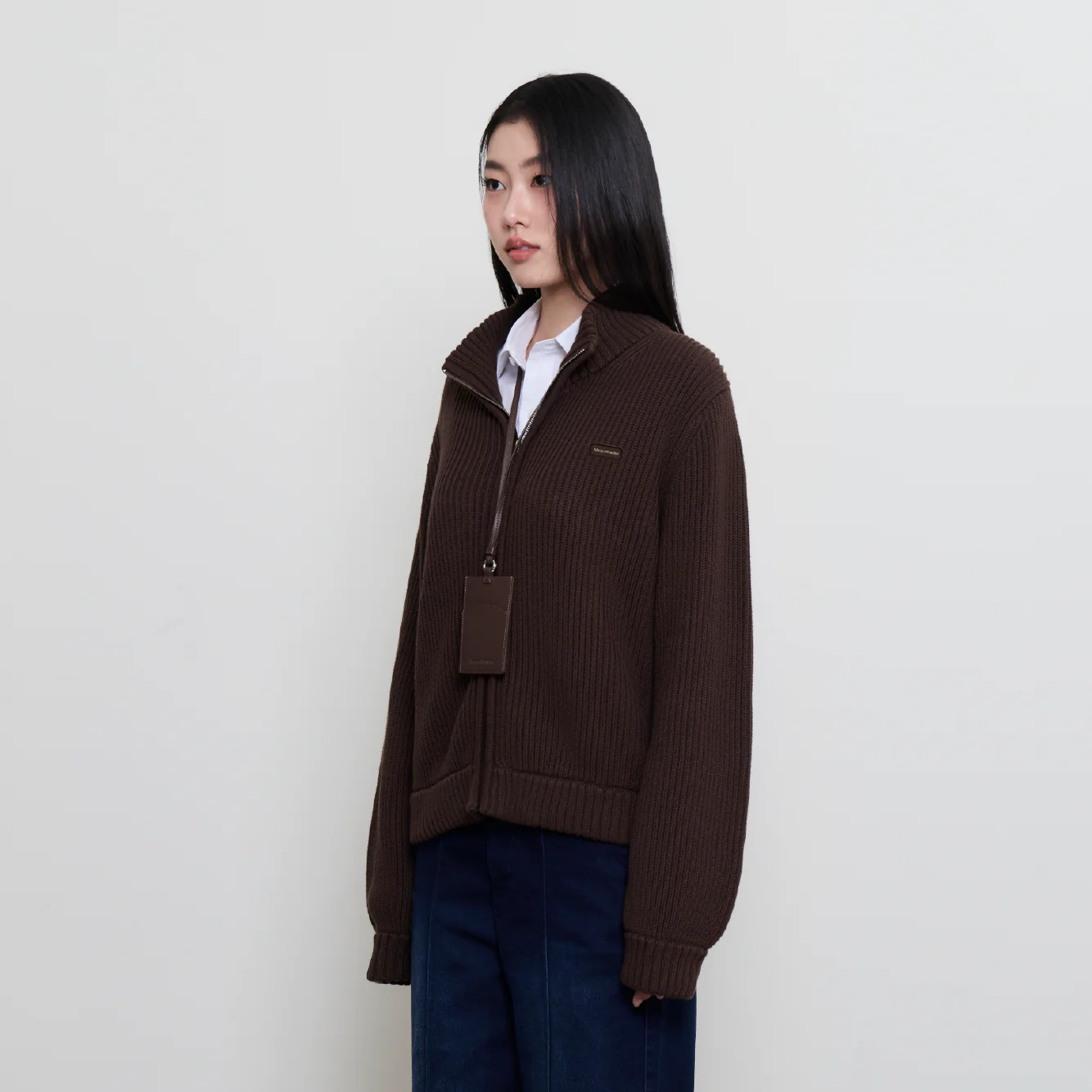 Effortlessly elevate your office look with this front-zip cardigan in Espresso Brown and Vanilla Yellow. Designed with an AW-logo zip pull, a signature name patch at the front, and subtle embroidery at the back, it’s a versatile layer that keeps you warm at work and transitions seamlessly into after-hours style.